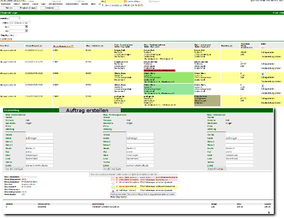 • Die Buttons "Auftrag erstellen" und "Kunde mit Rechnungsadresse überschreiben" zeigen sich erst, wenn ein Kunde aus dem Listing ausgewählt ist.
