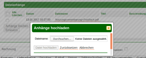 Diese Anhänge werden beim Generieren von PDF-Dateien an die ERP-Dokumente angehängt, z.B. AGBs oder aktuelle Angebote. Es werden in dem Fall die Daten kopiert, sodaß an den ERP-Dokumenten immer die Anhänge zum Generierungszeitpunkt eingebettet sind.